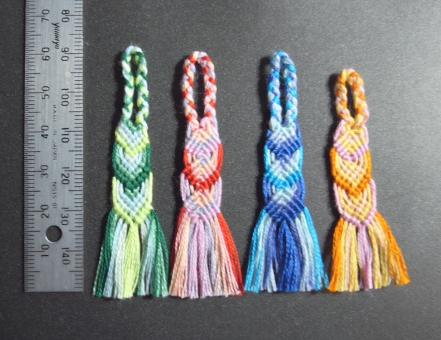 娘に頼んで作って貰った長さ5Cm 程のミサンガ。 百均で沢山買った小物入れのファスナーに取り付けて中身を区別するため色分けして貰いました。 pic.twitter.com/bTD5NASnSR